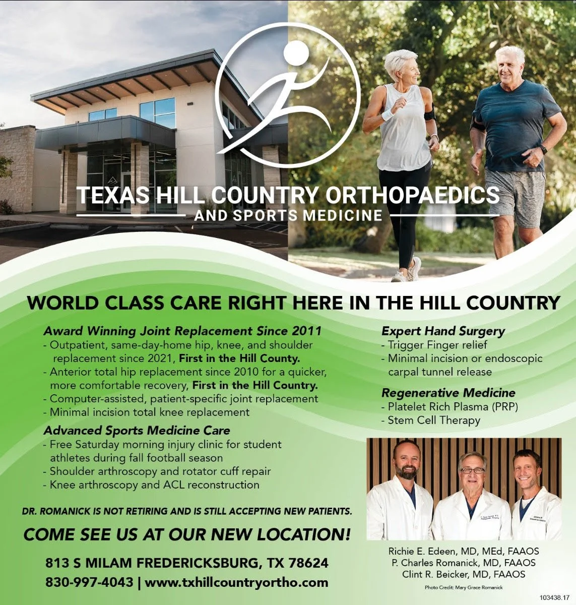 Commission of headshots and images in front of building. These images were used in add placed in the Fredericksburg, TX newspaper (digital and paper print).